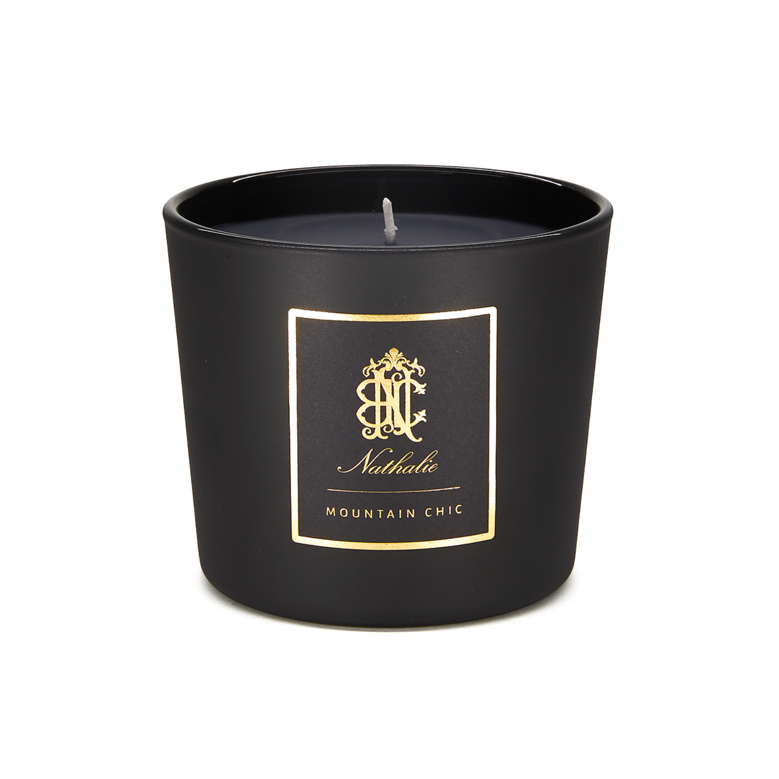 Candles symbolize romance, warmth, passion, hope, and fire. Their cozy light brings a magical glow to your home. Housed in a stylish, matte black glass vase, the Mountain Chic scented candle is a classy decorative element in any room. They are made with natural oils and black wax, and scented with the exclusive fragrance developed by Nathalie Baeten.